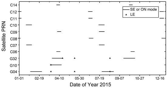 Data deleted from Block-IIA (G04, G10 and G32) in eclipse season and BeiDou Navigation Satellite System (BDS) satellites in orbit-normal (ON) mode (SE represents solar eclipse and LE represents lunar eclipse).