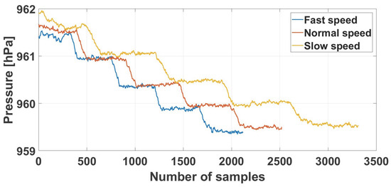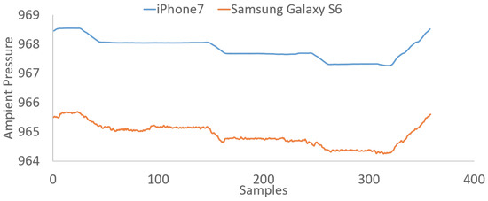 Li et al. [7] suggest using barometers for 2.5-dimensional (2.5D) (floor-level) localization. They examine how the barometric formula performs for altitude determination. They researched the robustness of altitude estimation on different devices that record differences from 2.1 to 2.5 hPa, which is translated to an offset of multiple floors. They noted that the variation of pressure over 2 h could reach an equivalent of a 10 m height change. They also examined latency robustness as well as stability in the short term, where they noticed changes of 0.1 hPa every 10 min. On the basis of their experiments, they argue that it is impossible to accurately determine height using a barometer in an indoor environment in an absolute manner. They strongly point out the necessity of a reference station. In their study, they used a reference station 5 km away. However, a reference station is not always available, and using other devices such as reference stations requires calibration, which is not realistic in a real-world scenario.