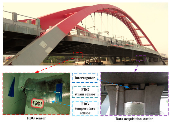- Costa, B.J.A.; Figueiras, J.A. Fiber optical based monitoring system applied to a centenary metallic arch bridge: Design and installation. Eng. Struct. 2012, 44, 271–280. [Google Scholar] [CrossRef]