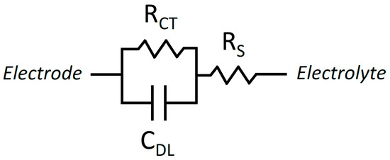 Schematic representation of the simplified Randles circuit commonly used to model electrode-electrolyte interfaces.