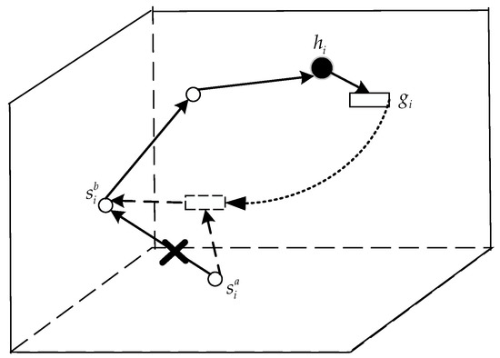 The cluster head node hi in the sub-volume i is responsible for collecting and forwarding the data packets sent by all the cluster members Si in the cluster and the glider gi, and finally sends the data to the surface sink node. Supposing that the routing table of the cluster head holds all the routing information in the volume, and the route arrived by each sensor node is routed according to the shortest path, that is, the path reached by each node is unique. In this network, underwater nodes automatically go to sleep from the active state when no data needs to be received or sent. While the node is sleeping, it no longer sends data packets. When the state changes, the node sends the data packet to update the status information. Glider gi in this volume periodically approaches the head nodes hi and the collected environmental data is forwarded to hi. At the same time hi forwards the link disruption information of cluster members to gi so that the glider gi can repair the link disruption is a timely way as the relay node. A schematic diagram of this is shown in Figure 2.