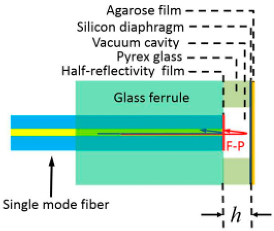 To produce the Fabry–Perot (FP) effect, they sandwiched a hollow Pyrex glass between a SMF which is embedded in a glass ferrule with a half-reflectivity film coating on its end and a silicon diaphragm coated with Agarose film. The vacuum cavity with two reflective surfaces and a certain length that formed by this structure will cause the FP effect in the FPI. Because Agarose is sensitive to humidity, its RI will change with the ambient humidity, which means the FPI can be used for humidity detection. The whole experimental setup is shown in