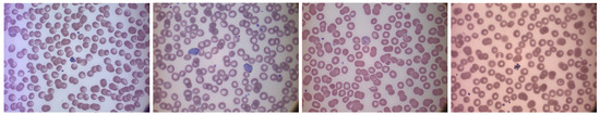 It is worth noticing that cell colour and the colour contrast between cells and background can vary so often according to the different, existing staining techniques, thickness of smear, microscope illumination and microscope’s image acquisition procedure, as shown in Figure 1. A standardization of the procedure should be really useful to avoid superfluous differences in similar images’ features and to have fair comparisons among the several proposed methods. Moreover, independence of sample cannot be overlooked. Usually, any pattern recognition system is evaluated by performing tests using a real set of samples. In the case of diagnosis, this is a key aspect. Any system for diagnosis should be tested on different images, acquired by different sources, and different specimens. This is crucial to guarantee the diagnostic capability and usefulness of a computer vision system. The main efforts towards the realization of a fully automatic blood cells segmentation and classification system cannot leave these aspects out.