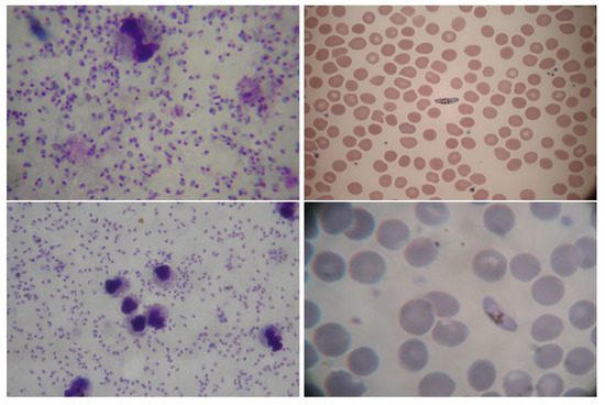 - Sathpathi, S.; Mohanty, A.; Satpathi, P.; Mishra, S.; Behera, P.; Patel, G.; Dondorp, A. Comparing Leishman and Giemsa staining for the assessment of peripheral blood smear preparations in a malaria-endemic region in India. Malar. J. 2014, 13, 512–516. [Google Scholar] [CrossRef] [PubMed]