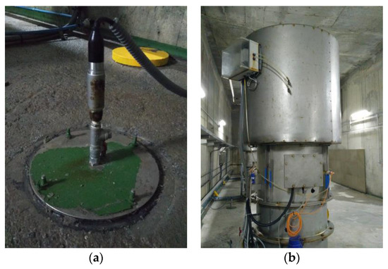 Pressure sensors installed in wave power plant of Mutriku. (a) OWC chamber static pressure sensor; (b) Wells turbine pressure drop sensor [EVE].
