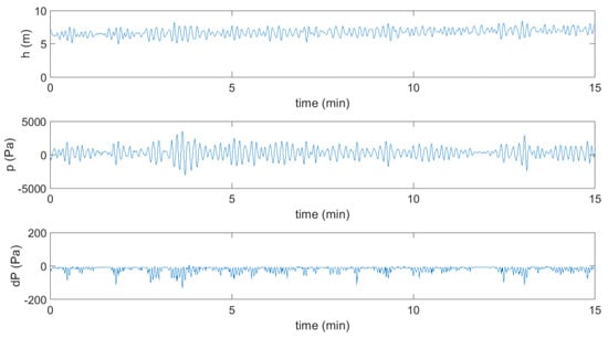 Data recorded by both sensors in comparison with the water level within the OWC chamber is presented in Figure 6. This example of data corresponds to a period of 15 min collected on 10 October 2017, starting at 6:00 a.m.