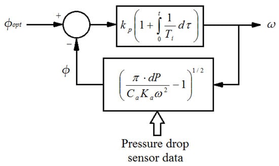 Accordingly, the aim of the flow controller is to keep the operating point around the optimum flow coefficient according to (13). In this sense, the measurement of the current flow coefficient is needed as feedback element. This value is estimated from the measurements taken from the pressure drop sensor (see Section 3). Previously, Equation (5) has been modified taking into account the relation between φ, and vt in (2):