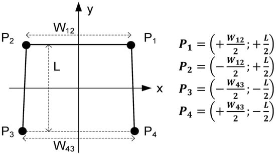 where Fk represents the magnitude of the force applied to each leg, W12 and W43 represent the distances between the front and rear legs respectively—which corresponds roughly to the mean walker width (W), L represents the distance between front and rear legs, which corresponds to the walker length.