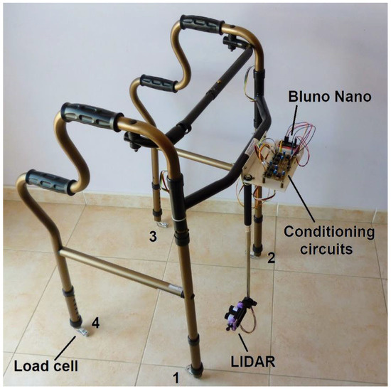 It is important to refer that the proposed measurement system is a low-cost prototype that can easily be adapted to existing mobility aiding devices, including standard walkers, wheeled walkers and rollators.