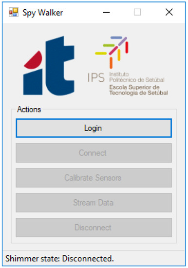 All these tasks are done by the application “Spy Walker” that runs on the host side and is managed by the physiotherapist. The application was developed in Visual Studio 2012 using the C# programming language. Its main window offers the following options (see Figure 7):