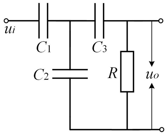 A schematic circuit of the TEV coupling module is shown in Figure 3. In the schematic, C1 is the equivalent capacitance between the metal shell of the switchgear and the TEV sensor, C2 is the filter capacitor, C3 is the coupling capacitance, R is the resistance, ui represents the induced transient voltage on the switchgear surface and uo is the output voltage of TEV coupling module.