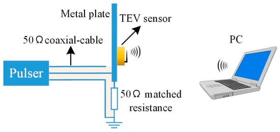 In this study, a TEV PD calibration system, comprising a TEV signal source, signal transmission cable, matched resistance, wireless TEV sensor, and terminal computer, as shown in Figure 12, was designed based on the TEV signal generation and PD detection principle.