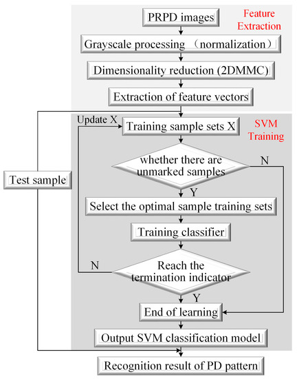 Then, two-dimensional maximum margin criterion (2DMMC) [24] is used to reduce the dimensionality of the PD grayscale images by horizontal and vertical compression. A series of feature vectors are extracted from the converted matrix to construct the partial discharge image feature sets.