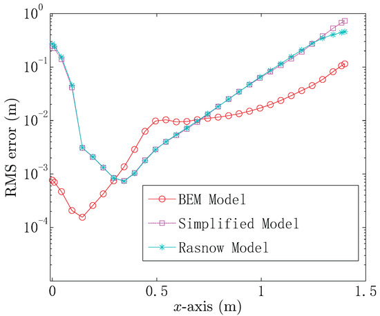 The locating RMS errors by using the boundary element method (BEM) model, the simplified model and the Rasnow model.