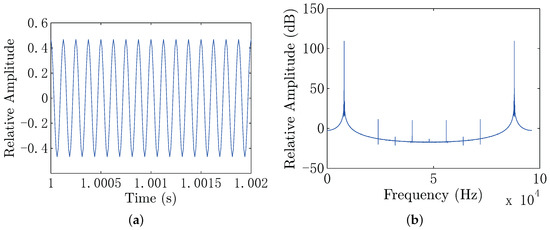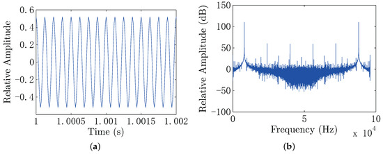 (a) The measured voltage in the time domain; (b) the frequency spectrum of the measured voltage.
