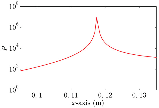 Figure 19. The space spectrum of the electro-locator at the hypothesis point . - Step 5: From Figure 19, we can see that the position corresponding to the peak of the spectrum is , which is close to the true position .