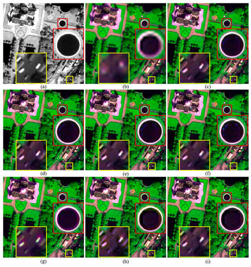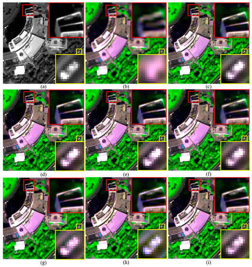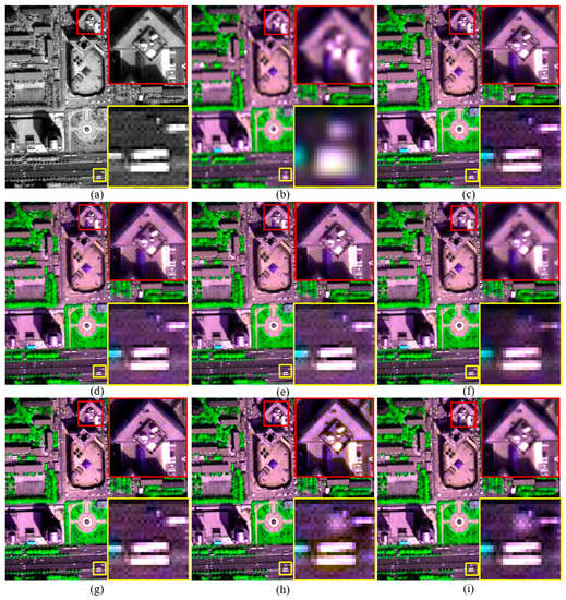 - Vivone, G.; Alparone, L.; Chanussot, J.; Dalla Mura, M.; Garzelli, A.; Licciardi, G.A.; Restaino, R.; Wald, L. A critical comparison among pansharpening algorithms. IEEE Trans. Geosci. Remote Sens. 2015, 33, 2565–2586. [Google Scholar] [CrossRef]