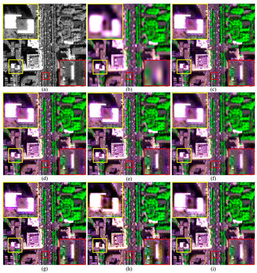- Aiazzi, B.; Alparone, L.; Baronti, S.; Garzelli, A. Context-driven fusion of high spatial and spectral resolution images based on oversampled multiresolution analysis. IEEE Trans. Geosci. Remote Sens. 2002, 40, 2300–2312. [Google Scholar] [CrossRef]