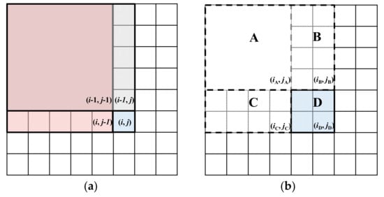 Diagram of integral image fast calculation. (a) Entire integral image calculation diagram; (b) Sub area-based integral calculation diagram.