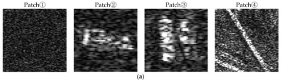 In order to illustrate the performance of the filter, a set of typical targets patches and the filtering results are shown in Figure 12. The corresponding quantity performances are listed in Table 2, where the mean and variance are expressed in normalization. Among them, patch 1 contains a flat sea surface. Thus, the filtered maintain parameters a are mostly low, and the effect of smoothing is obvious. Thus, the index of ENL has significantly improved after filtering. Patch 2 contains a single ship, patch 3 contains double ships, and patch 4 contains a straight artificial target in the land area. From Figure 9b, the filtered maintain parameters within the target position are obviously higher than those in the background, and appear to have the same outlines as the targets. Thus, in the filtered result, the background pixels are smoothed and the target information can be retained effectively.
