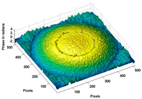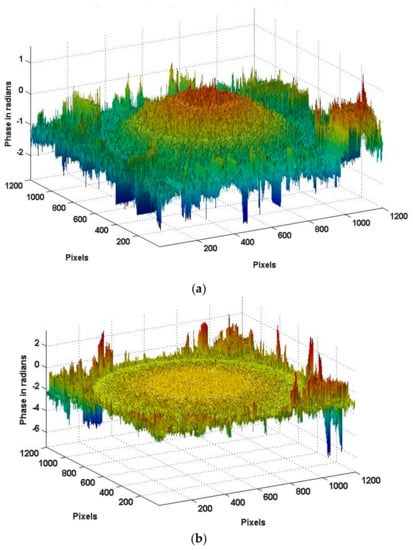Fast two-dimensional phase-unwrapping algorithm based on sorting by reliability following a noncontinuous path (2D-SRNCP) [25] is used to process the unwrapping phase. The algorithm sorts by reliability, following a non-continuous path, and copes excellently with the noise that corrupts the real wrapped phase images.