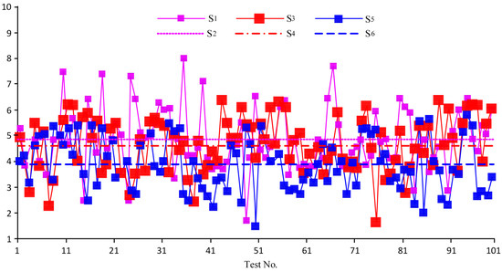 As shown in Figure 13, the errors under different temperatures changed randomly and irregularly. There was a certain regularity in mean values: the mean values gradually decreased as the temperature increased, namely, S6 < S4 < S2.