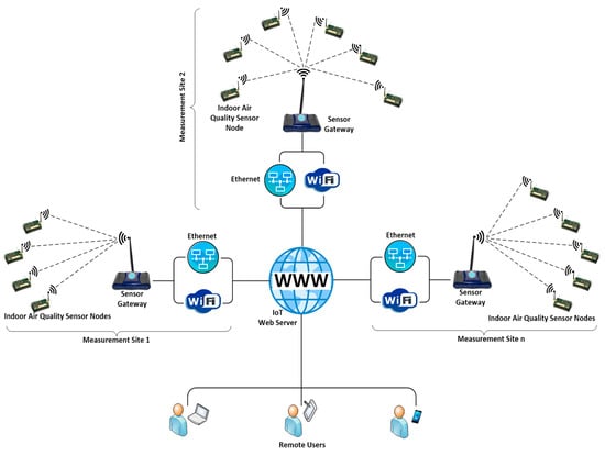 - A distributed modular IAQM system using sensors nodes for many AQ parameters, a WSN, and an IoT server is developed. The system’s hardware and software are described in detail.