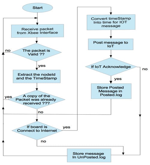 | 8: Send the data via XBee interface to the gateway, |