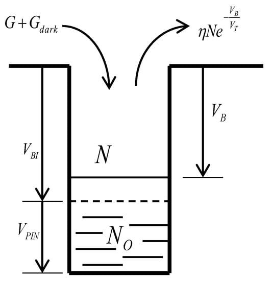 As shown in Figure 2, a buried photodiode can be modeled as a potential well with free electrons at zero bias. In order to deplete these electrons, we should reversely bias the photodiode at voltage (called pinning voltage). The potential barrier height, from the bottom to the top of this potential well, is the sum of the pinning voltage and the junction build-in voltage, which is .