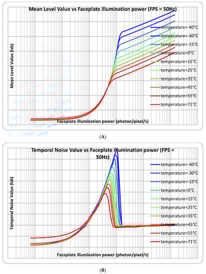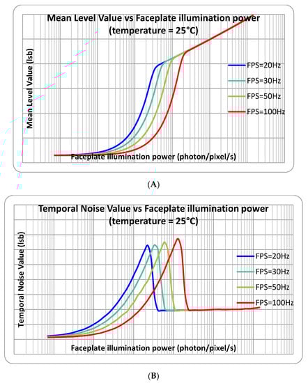 From Equations (9) and (10), it is clear that the incremental SNR in the logarithmic regime depends only on the buried photodiode capacitance and the SNR in the linear regime is determined by the Lin–Log transition point. The optimization of the buried photodiode should be directed to have a low and a large .