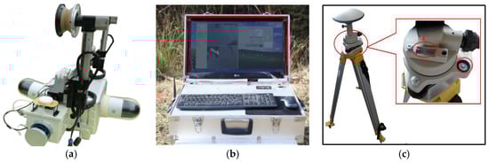 Photos of the autonomous inspection system: (a) CIR body; (b) base station; (c) GNSS base station.