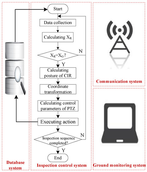 In this study, autonomous inspection mainly includes three autonomous aspects: autonomous operation, autonomous target inspection, and autonomous positioning inspection. Autonomous operation is the ability to independently select motion path and automatically adjust movement according to path planning to reach various positions required by transmission line inspection, which is the foundation of the other autonomous applications [25,26]. Autonomous target inspection is the ability to automatically detect inspection targets or areas according to task planning [27,28]. Autonomous positioning inspection independently detects problems at specified points and provides positioning information.