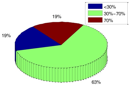 All of the percentages of velocity error decrease corresponding with the 27 sets of vibration experiments are listed in Table 2. A corresponding statistic pie chart is shown in Figure 8. The statistical results show that the proportion of velocity error decreasing by more than 30% in the total results reach about 82% after g-sensitive misalignments compensation. As shown in Table 2 and Figure 8, though the proportion of velocity error decreasing by less than 30% is about 18%, which is affected by random measurement error to a certain extent, the systematic errors caused by g-sensitive misalignments can be compensated for to a large extent.