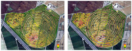 - Urdanoz, V.; Amezketa, E.; Clavería, I.; Ochoa, V.; Aragüés, R. Mobile and georeferenced electromagnetic sensors and applications for salinity assessment. Span. J. Agric. Res. 2008, 6, 469–478. [Google Scholar] [CrossRef]