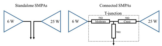 Similarly, the reflection coefficient S22 of each SMPA, noted as ΓOUT_OFF in Table 1, of the 6 W moderate SPMA and the 25 W SMPA are presented in Table 1, along with the characteristics of each SMPA.