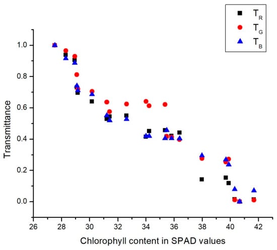 Transmittance according to the chlorophyll content in SPAD values.
