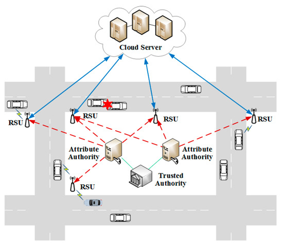 - Message confidentiality. The messages should be transmitted in encrypted form, and the vehicles which cannot satisfy the access policy defined by the message sender should not be allowed to access the plaintext of the message. Meanwhile, the cloud server and RSUs cannot recover the broadcast message.