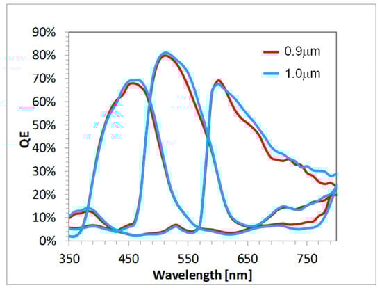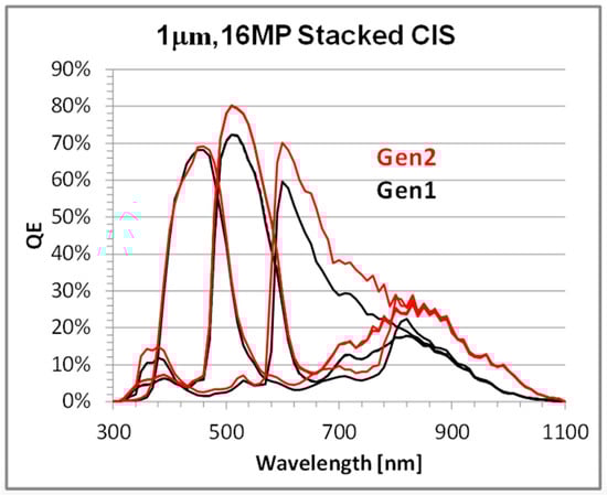The QE from 1 µm and 0.9 µm pixel products, both using the Gen2 BSI-stacking technology.