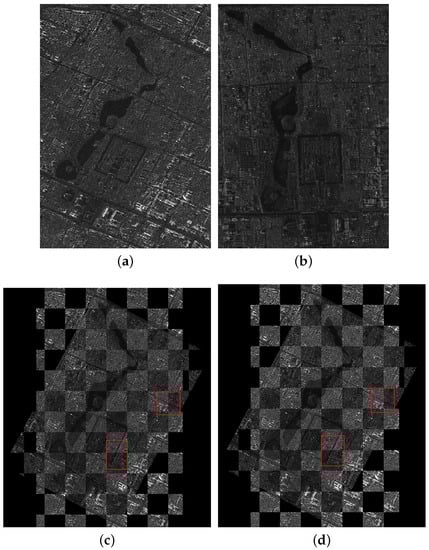 It is clear that there exist differences between the four images. The water areas are changed according to the weather and wave pattern, shown in Figure 1a, and the urban areas differ widely due to the geometric distortions caused by different imaging situations. Especially for the SL mode, the high spatial resolution image further widens the existing gap of geometry information [23]. Moreover, due to the high spatial resolution, processing large volumes of remote sensing data has become a normal daily activity. The computational cost directly depends on the data volume, making the real-time registration a challenging task.