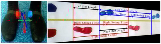 GA in this study is considered as an indicator to show the difference between right and left leg walking which may serve as a diagnostic tool for clinicians. There is no commonly accepted superior guideline, preferred methodology or protocol for GA evaluation. The European GAITRite Network Group has developed Guidelines for Clinical Applications of Gait Analysis [] to provide guidance to clinicians who implement spatiotemporal gait analysis to the clinic. Two issues are addressed in []: (1) Environmental measurement conditions and safety issues describe lighting, noise, visual distraction, clothing, footwear and safety; (2) Measurement procedures describe steady-state gait at different velocities, standardized walking instructions, assistive devices, stride-to-stride variability, gait analysis in association with simultaneous cognitive tasks and description of study population. To evaluate stride-to-stride variability, they recommend the highest possible number of gait cycles from a practical standpoint, with a minimum of three consecutive gait cycles for both left and right sides (i.e., a total of six gait cycles) []. Many issues relevant in GA assessment is reported in []. However there is no recommended systematic procedure for developing a GA assessment. General measurement of gait variability includes cadence, stride length and gait velocity [], alone or in combination with other outcome measures such as stride to stride variability assessed by an accelerometer, gyroscope and magnetometer [,,,]. Researchers presented a set of 31 gait variables in [] and 16 variables were investigated. Stride-to-stride variability [] is commonly used to quantify walking consistency which is strongly associated with motor ability [], mild cognitive impairment [], dementia [] and stroke []. In our study, a set of 24 commonly reported physical gait variables are initially considered for this analysis from both right and left legs. Figure 20 shows the GA variables.
