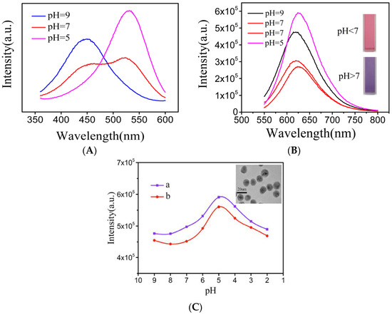 3.3. Effect of pH on the Fluorescence Property of the NR-β-CD@AuNPs