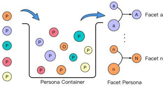 In order to acquire a comprehensive description of a human, the second objective of this research is to model a series of personae representing a comprehensive description of a certain person, or personality. One of the groupings of personae is called facet persona (FP), in which the term ‘facet’ in the psychological field refers to a specific and unique aspect of a person’s mental state or boarder personality trait, such as the mental state demonstrated on the Internet [15]. Specifically, each person could be modeled to one special description called a primary persona (PP), denoting the primary personality state in which a person presents themselves.