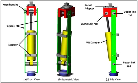 - Xu, L.; Wang, D.-H.; Fu, Q.; Yuan, G.; Hu, L.-Z. A novel four-bar linkage prosthetic knee based on magnetorheological effect: Principle, structure, simulation and control. Smart Mater. Struct. 2016, 25, 115007. [Google Scholar] [CrossRef]