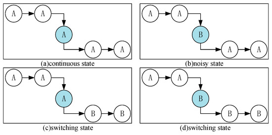 Figure 8b shows one of them, and the final influence factor is −5. Therefore, we can confirm which category the state chain belongs to, fix the noise on the basis of the behavior context by replacing the state A, and recognize the switching node.