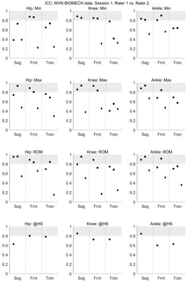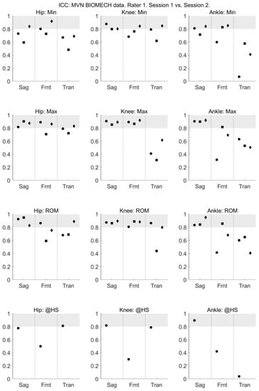 - Meldrum, D.; Shouldice, C.; Conroy, R.; Jones, K.; Forward, M. Test-retest reliability of three dimensional gait analysis: Including a novel approach to visualising agreement of gait cycle waveforms with Bland and Altman plots. Gait Posture 2014, 39, 265–271. [Google Scholar] [CrossRef] [PubMed]