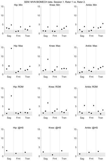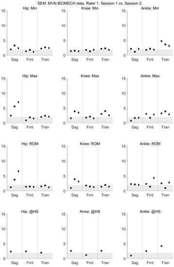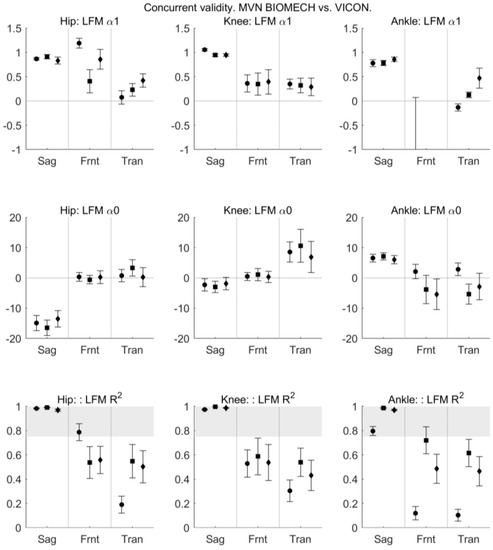 - Røislien, J.; Skare, O.; Opheim, A.; Rennie, L. Evaluating the properties of the coefficient of multiple correlation (CMC) for kinematic gait data. J. Biomech. 2012, 45, 2014–2018. [Google Scholar] [CrossRef] [PubMed]