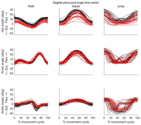 | Jump | Local maxima in left knee flexion angle that preceded each local peak in vertical heel position | Local maxima in left knee flexion angle that succeeded each local peak in vertical heel position |