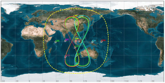 In addition, the selected stations for maneuver detection of BDS MEO satellites are show in Table 2. The distributions of trajectories on the ground and the location of the selected stations are shown in Figure 2.