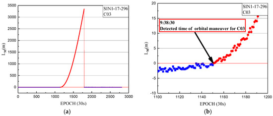 Using the one-step method, the orbital maneuver was detected for C03 on 23 October 2017. The detection results of orbit maneuvering for SIN1 are firstly given, with the orbital maneuver detection factor series shown in Figure 3.