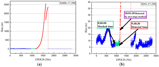 In order to justify the correction of the detection results for SIN1, the precise orbit products provided by iGMAS and the pseudo-range SPP bias of the other station, XMIS, are used as references.